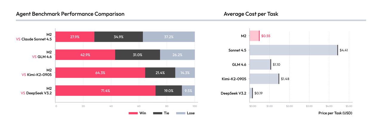 今天,我们正式开源并上线了 MiniMax M2,专为 Agent 和代码而生,仅 Claude Sonnet 8% 价格,2倍速度,限时免费!